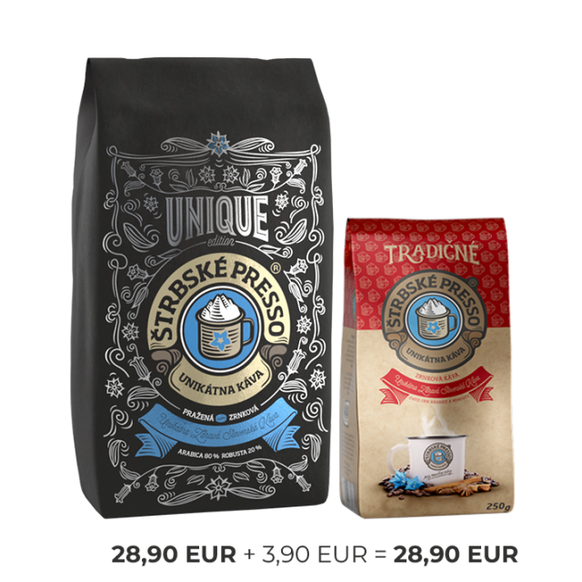 Pri kúpe 1 kg zrnkovej kávy Unique Brown dostanete Štrbské presso tradičné 250 g ako darček.