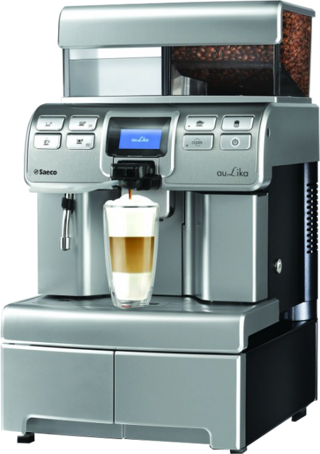 Profesionálny kávovar Saeco Aulika Top je určený hlavne pre kancelársky sektor a pre menšie gastro prevádzky. Plnoautomatický kávovar Saeco Aulika disponuje dvomi výhrevnými telesami, ktoré umožňujú pripravovať kávu, horúcu vodu a paru súčasne. Saeco Aulika prichádza s úplne novým kapučinátorom s funkciou "One Touch", pomocou ktorého pripravíte pravé talianske cappuccino & latte machiato stlačením jediného tlačidla. Komunikáciu kávovaru s obsluhou zabezpečuje prehľadný grafický digitálny displej, na ktorom sa zobrazujú prevádzkové informácie a parametre nastavení. Režim programovania obsahuje preplach, automatickú dekalcifikáciu, vypínanie po dobe nečinnosti, predparenie káv, teploty, počítadlá vydaných porcií a veľa daľších nastavení.
